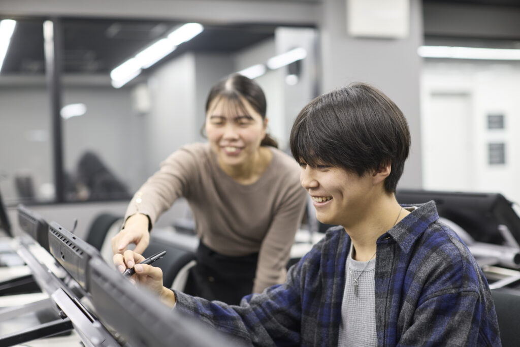 プロ講師・学生スタッフと一緒にランチでき、学校生活や制作の話が聞けるのが魅力!