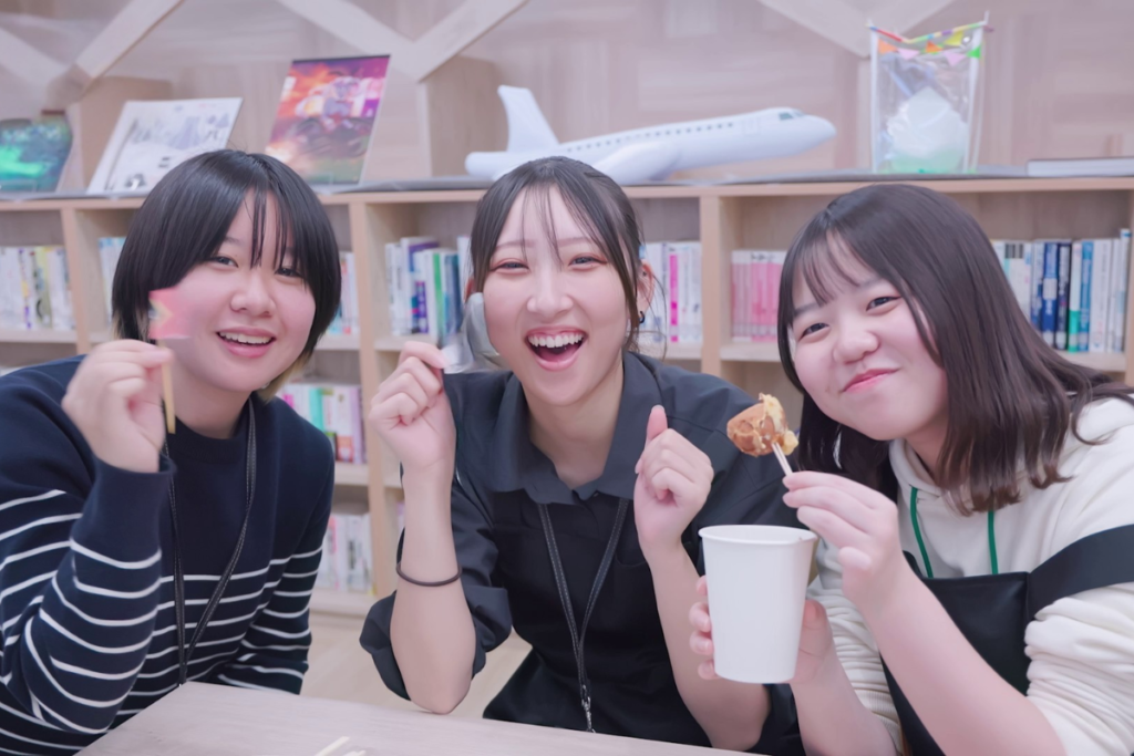 作った作品をみんなで見たり、集合写真を撮ったり、